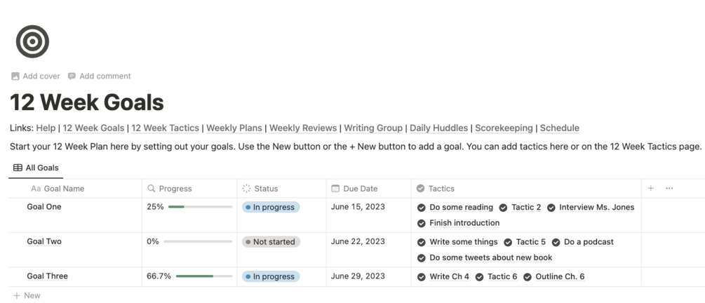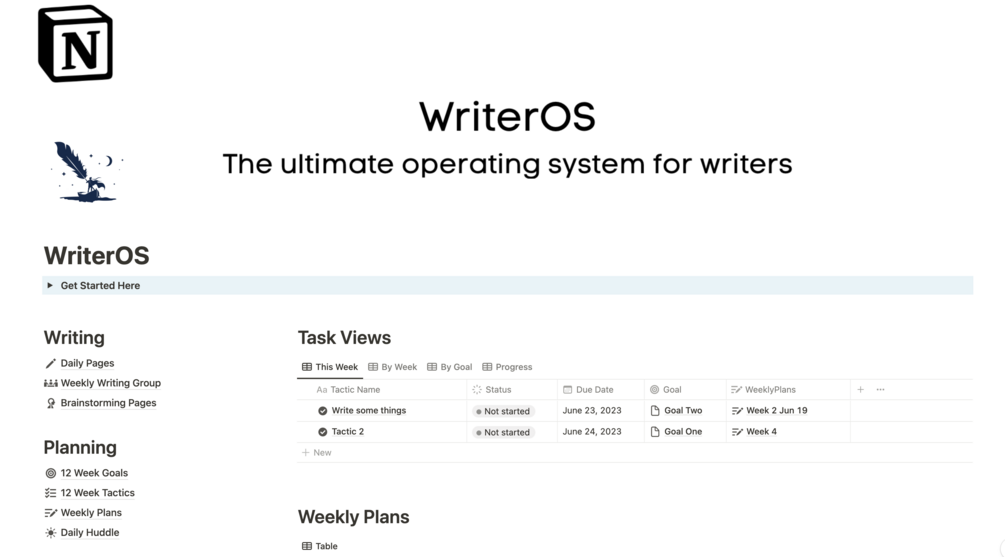 The world's only Notion template for implementing the 12 Week Year for Writers